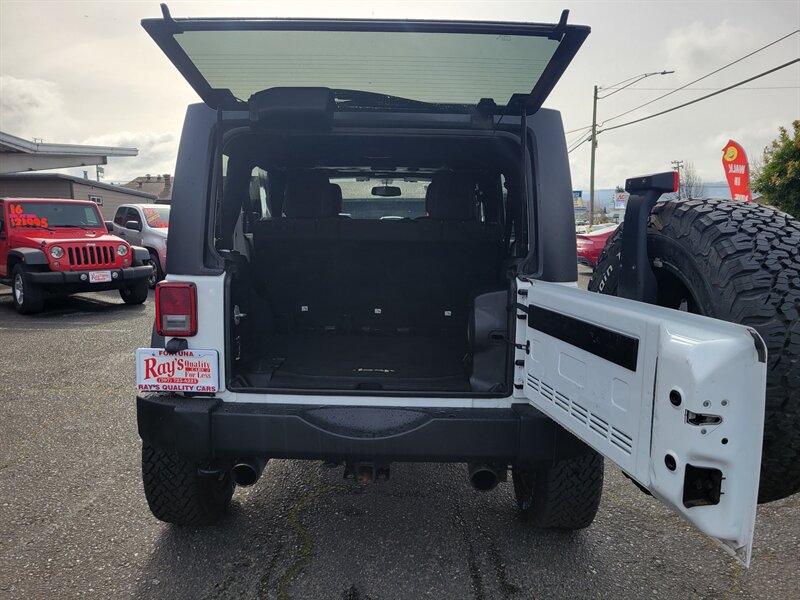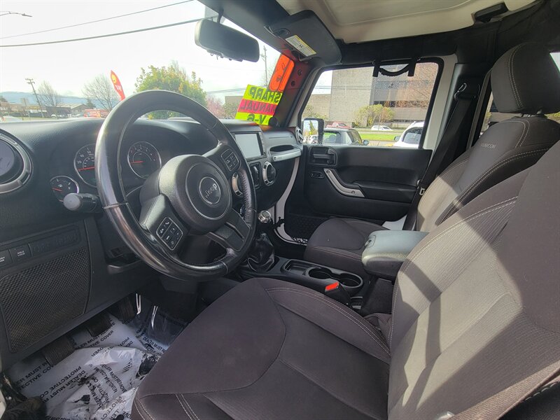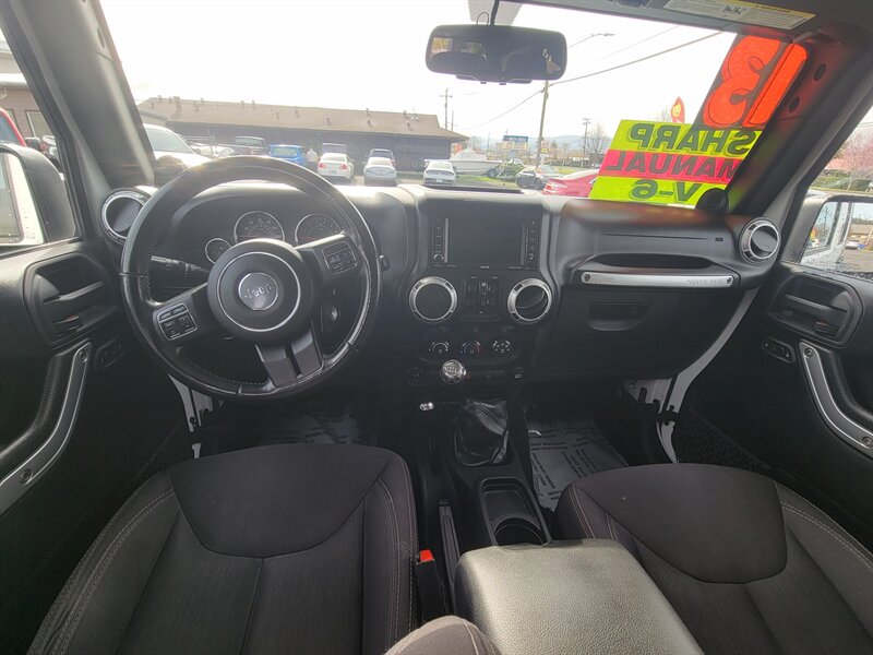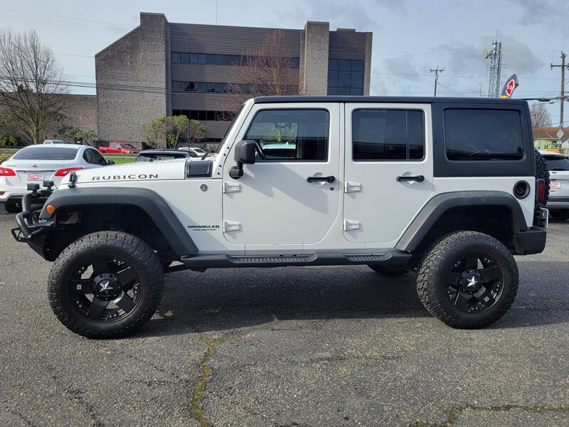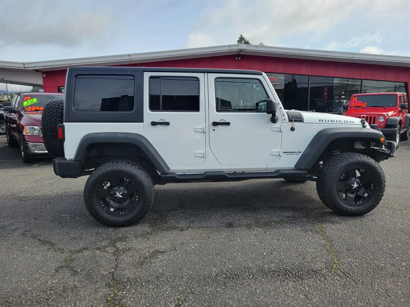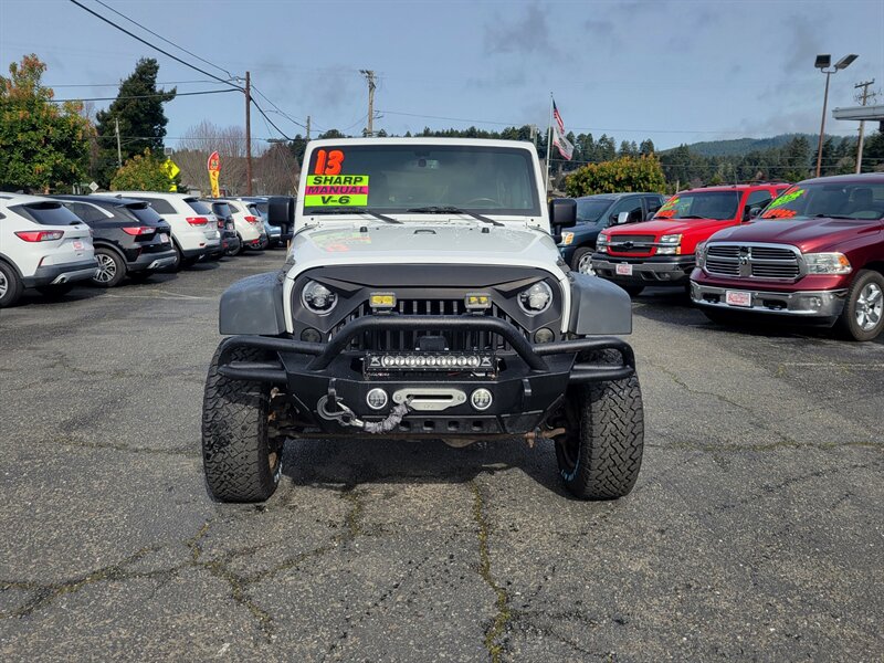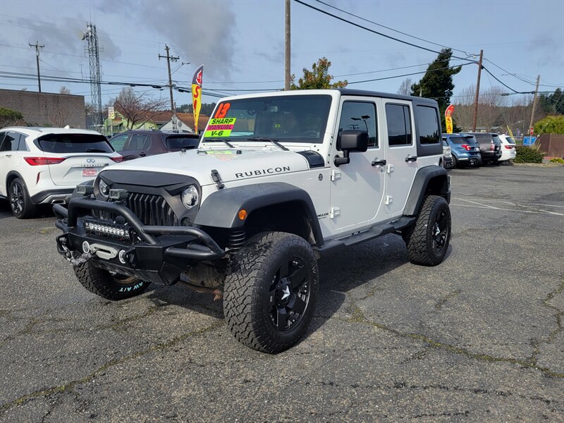 Bright White Clear Coat on the outside, Black interior, and a punchy 3.6L V6 (285 hp / 260 lb-ft) under the hood — this 2013 Jeep Wrangler Rubicon is ready to play! Factory-equipped with Rubicon favorites: Rock-Trac 4x4 with 4:1 low range, Tru-Lok locking front & rear differentials, electronic sway-bar disconnect, heavy-duty Dana 44 axles, full skid plates, 17" wheels with all-terrain tires and front/rear tow hooks for serious off-road capability. Comfort and convenience come from factory amenities like air conditioning, cruise control, power windows/locks/mirrors, tilt steering and an AM/FM/CD/aux sound system, plus modern safety gear including ABS, stability and traction control and airbags. Clean CARFAX, excellent overall condition, and under 77,000 miles (averaging less than 6,000 miles per year) — fun and dependable, ready to go!