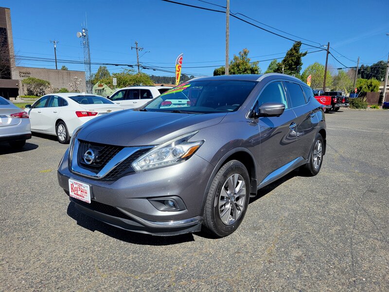 Bright and ready — this 2015 Nissan Murano SL in Gun Metallic with Graphite leather-appointed interior is powered by a smooth 3.5L V6 (260 hp, 240 lb-ft) and returns an efficient 21 MPG city / 28 MPG highway. Factory-equipped with premium comforts and convenience features including leather seating with heated front seats, power-adjustable driver seat with lumbar support, dual-zone automatic climate control, keyless entry with push-button start, a touchscreen infotainment system with Bluetooth and USB/AUX connectivity, and a rearview camera. You’ll also enjoy power liftgate access, cruise control, steering-wheel audio and phone controls, alloy wheels and fog lights, plus a full suite of standard safety equipment (ABS, traction/stability control, multiple airbags, tire pressure monitoring). This Murano is in excellent overall condition and ready for many happy miles.