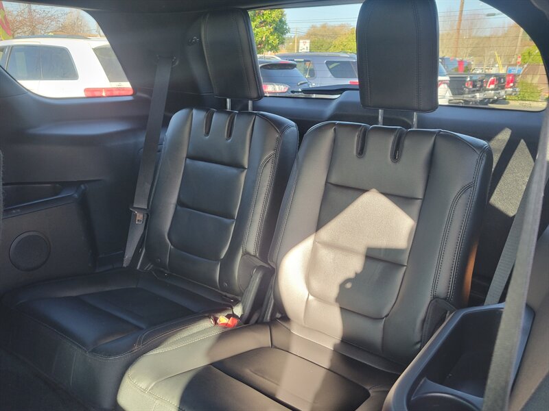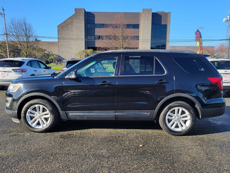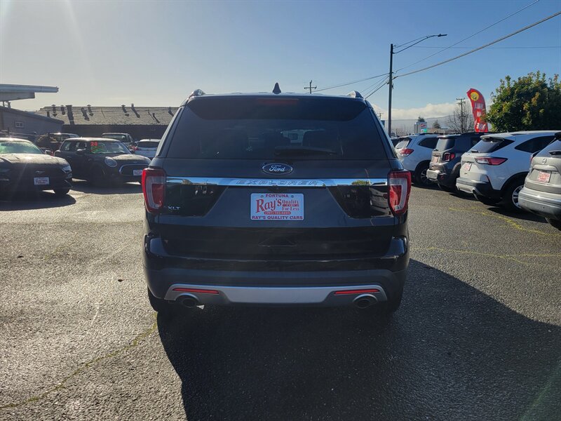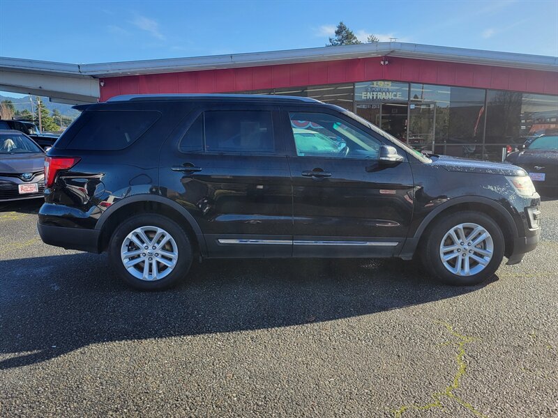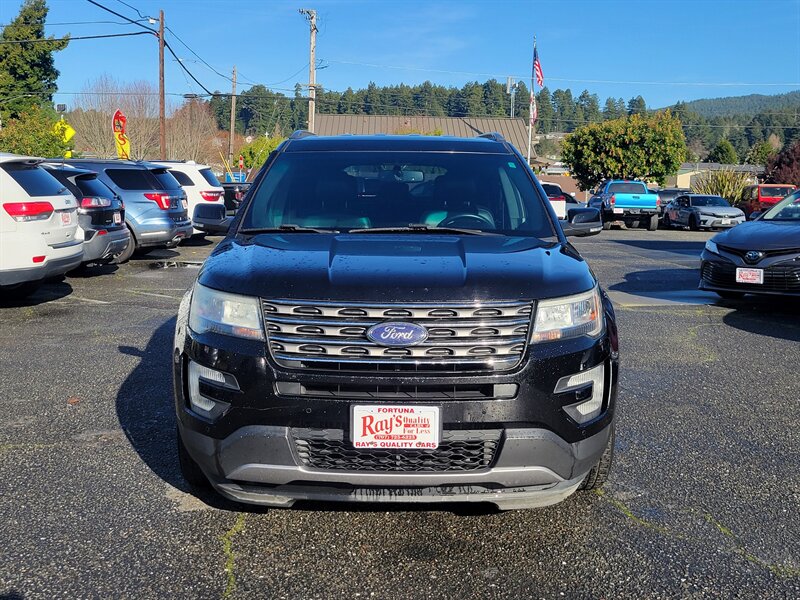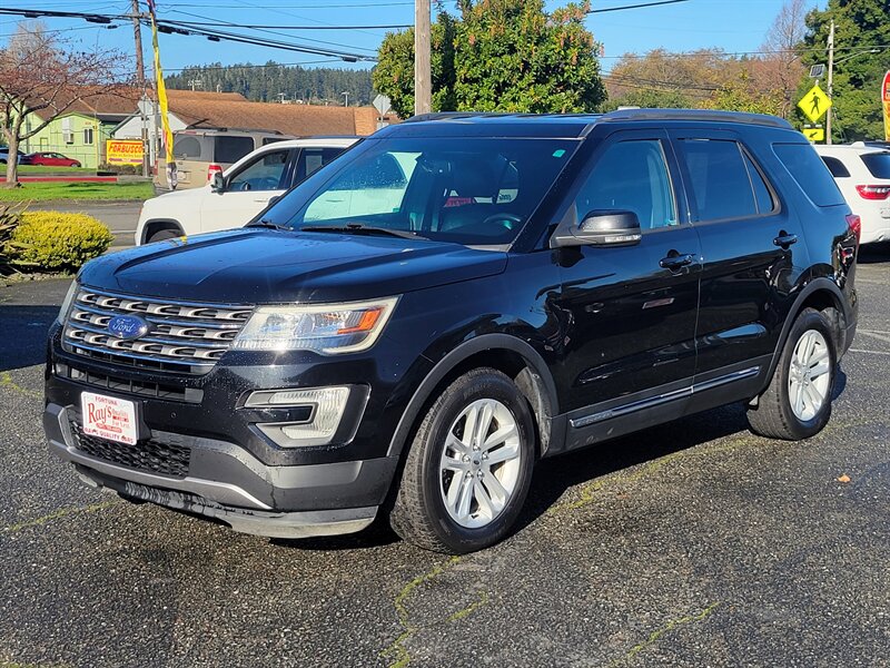 Clean 2016 Ford Explorer XLT in Black with a warm Medium Light Camel interior, powered by the 3.5L V6 (290 hp / 255 lb-ft) mated to a smooth 6-speed automatic — low miles under 90,000 (averaging <9,000 miles/year). Factory equipment includes seating for seven with a fold-flat third row, durable cloth upholstery, alloy wheels and roof rails, power windows/locks/mirrors, remote keyless entry, cruise control and tilt/telescoping wheel with steering-wheel audio controls, Ford SYNC Bluetooth hands-free/audio, AM/FM/MP3 stereo with USB/AUX, backup camera, ABS, stability/traction control and comprehensive airbags for safety. Friendly, well-maintained and ready for your next adventure.