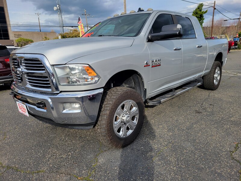 Get ready to tackle any job with this impressive 2016 RAM 2500 SLT! Powered by a robust Cummins 6.7L Diesel Turbo I6 engine, delivering 350 horsepower and a staggering 660 ft-lbs of torque, this truck is built for performance. The exterior shines in a Bright Silver Metallic Clear Coat, while the interior features a stylish Black and Diesel Gray color scheme, offering both comfort and sophistication.