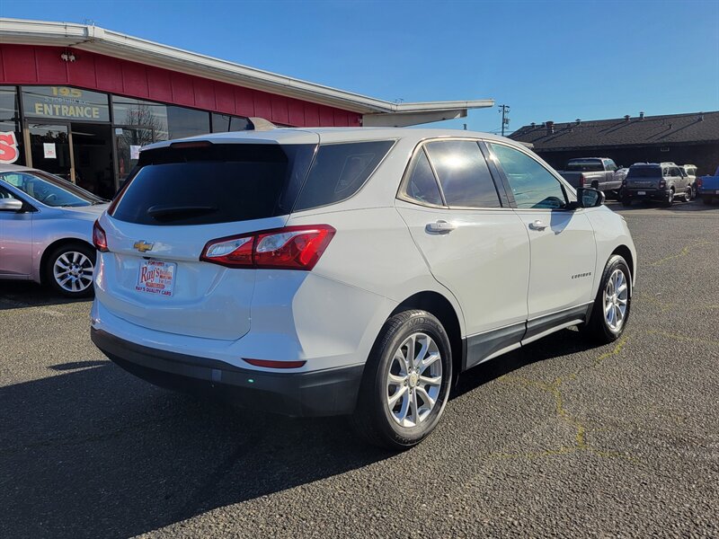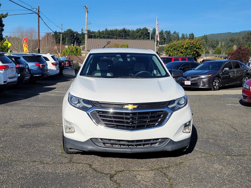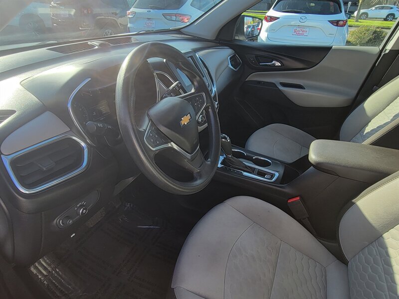 2019 Chevrolet Equinox LS in Black with a Black interior, powered by a 1.5L Turbo I4 (170 hp, 203 lb-ft) — good overall condition and rated 26 MPG city / 32 MPG highway. Factory features include cloth seating with 60/40 split-fold rear seats, a 7-inch Chevrolet MyLink touchscreen with Apple CarPlay/Android Auto, Bluetooth and USB connectivity, rearview camera, remote keyless entry, power windows/locks/mirrors, cruise control, air conditioning, steering-wheel audio controls, 17" alloy wheels, and safety equipment like ABS, StabiliTrak electronic stability control, multiple airbags and tire pressure monitoring. Cheerful, capable, and ready for your next drive!