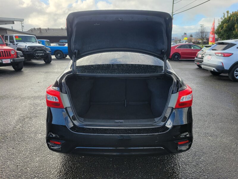 Bright Super Black on the outside with a comfortable Charcoal cloth interior, this 2019 Nissan Sentra S is powered by a reliable 1.8L I4 engine producing 124 hp and 125 lb-ft of torque, and returns an efficient 29 MPG city / 37 MPG highway. Factory-standard features include air conditioning, Charcoal cloth seating, 60/40 split-folding rear seat, power windows and door locks, remote keyless entry, cruise control, tilt steering, Bluetooth hands-free audio with USB input and AM/FM radio, a rearview backup camera, ABS with traction and stability control, tire pressure monitoring and multiple airbags for peace of mind. This Sentra is in excellent overall condition and comes with a clean CARFAX — ready for many happy miles!