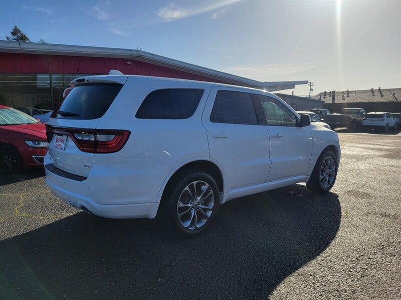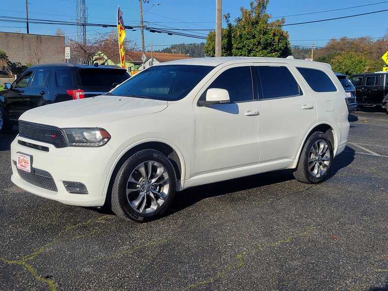 Bright, roomy and ready to roll — this 2020 Dodge Durango GT in White Knuckle Clear Coat with a Black interior is in excellent overall condition and comes with a clean CARFAX. Powered by the Pentastar 3.6L V6 (295 hp, 260 lb-ft) paired to an 8-speed automatic, it delivers smooth, confident performance. Factory-standard equipment includes three-row seating for up to seven with fold-flat rear seats, Uconnect infotainment with smartphone integration (Apple CarPlay/Android Auto) and Bluetooth, keyless entry with push-button start, multi-zone automatic climate control, power windows and locks, a rearview camera, full suite of airbags and electronic stability/traction control, alloy wheels and fog lamps — all the practical features you want for daily driving or weekend adventures.