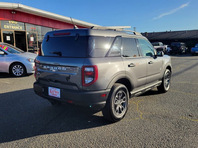 Ready for adventure — this 2022 Ford Bronco Sport Big Bend in Carbonized Gray with an Ebony interior is sporty, practical, and in excellent overall condition. Under the hood is the punchy EcoBoost 1.5L Turbo I3 producing 181 hp and 190 ft-lb of torque paired to an efficient automatic transmission and Ford’s capable 4x4 system with terrain management/G.O.A.T. modes for on- and off-road confidence. Factory-equipped features include an 8-inch touchscreen infotainment system with SYNC, Apple CarPlay and Android Auto, Bluetooth and USB connectivity, rearview camera, power windows and locks, remote keyless entry, cloth seating with split-folding rear seats for extra cargo versatility, roof rails for gear, alloy wheels, and a full complement of modern safety systems (ABS, stability control and multiple airbags). With under 43,000 miles — averaging less than 9,000 miles per year — this Bronco Sport is clean, well-maintained, and ready to hit the road with a smile.